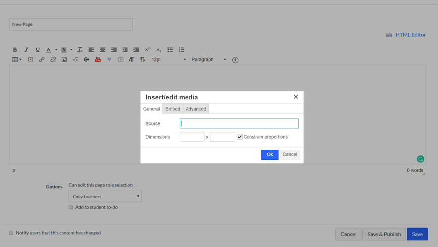 A similar way is to select ‘External Tool’ and you’ll get a drop down menu. Way at the bottom, you can find Youtube. This is useful if you want to search for the video instead of knowing the URL. Fill out the rest and you’re done.