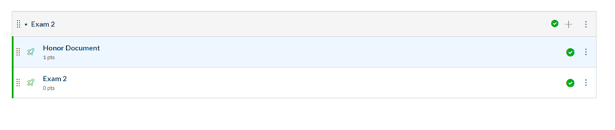 Essentially, I told him to first create his exam, create a module, and then create a quiz for your honor code. So let’s take a look at the honor code quiz first.